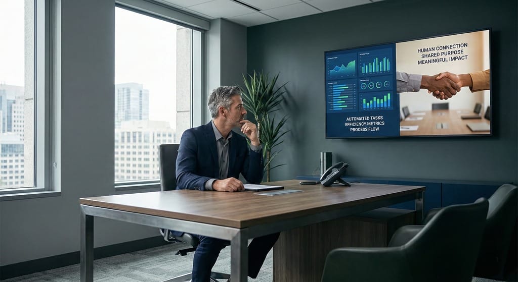 Examine your weekly calendar. For each activity, ask: “Could this be delegated with clear instructions? Does it have defined right/wrong answers? Could it be systematized?” Task-heavy activities answer yes. Purpose activities require context that changes meaning, involve stakeholder relationships, integrate competing values, and depend on trust earned over time.